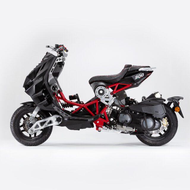 สำหรับการออกแบบของค่ายนี้ต้องบอกเลยว่า Dragster 300 เป็นสกู๊ตเตอร์ที่มีความโดดเด่นอยู่เยอะพอตัวด้วยดีไซน์ที่เป็นเอกลักษณ์ไม่เหมือนใคร และแฝงด้วยความดุดัน มีโครงสร้างตัวถังแบบเฟรมถัก หรือเรียกกันว่า Trellis Frame นั่นเอง พาร์ทงานประกอบรอบคันจะเห็นว่ามีความใส่ใจทุกรายละเอียด และแสดงให้เห็นถึงความประณีตในทุกจุด