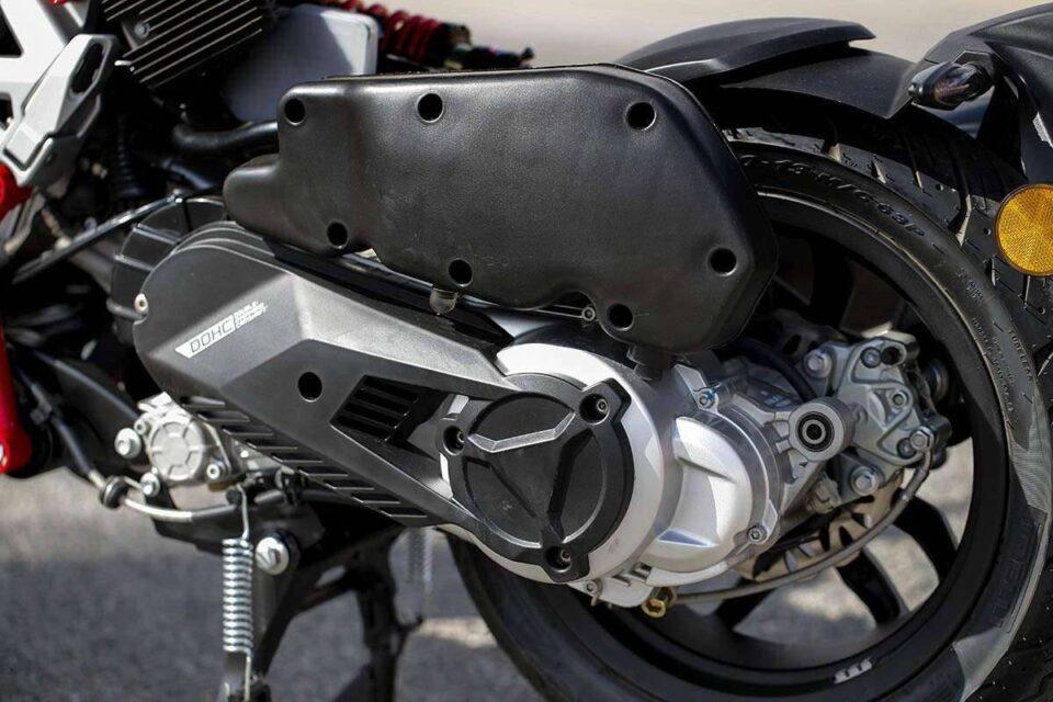 ถัดมาในส่วนของเครื่องยนต์จะเป็นขุมพลังขนาด 278cc สูบเดียว 4 จังหวะ 4 วาล์ว DOHC ระบายความร้อนด้วยของเหลว ให้กำลังสูงสุด 23.8 แรงม้า ที่ 8,250 รอบ/นาที และแรงบิด 26 Nm ที่ 6,250 รอบ/นาที ส่งกำลังขับเคลื่อนด้วยสายพาน ผ่านนชุดเกียร์อัตโนมัติ CVT พ้อมด้วยความจุถังน้ำมันขนาด 11 ลิตร และน้้ำหนักตัวโดยรวมอยู่ที่ 128 กก. (ไม่รวมของเหลว)