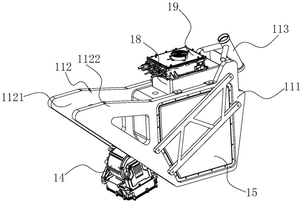 หัวใจสำคัญของดีไซน์ใหม่นี้คือแนวคิดของเฟรมที่แตกต่างจากเฟรมแบบ double-loop หรือ bridge แบบดั้งเดิมอย่างมาก CFMoto ใช้แผ่นด้านข้างขนาดใหญ่สองแผ่น ซึ่งคาดว่าทำจากอะลูมิเนียม แผ่นเหล่านี้ปิดช่องใส่แบตเตอรี่ และทำหน้าที่เป็นทั้งส่วนรองรับและจุดยึดสำหรับหัวพวงมาลัย มอเตอร์ไฟฟ้า แบตเตอรี่ และสวิงอาร์ม