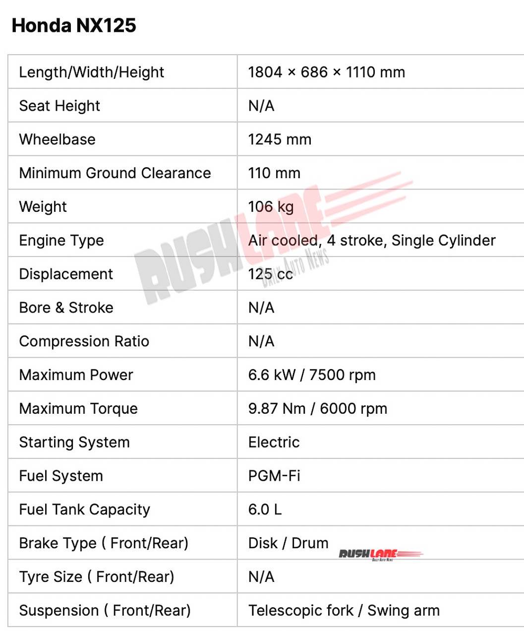 อย่างไรก็ตาม ในตอนนี้ยังไม่มีประกาศออกมาอย่างเป็นทางการว่า NX125 จะเปิดตัวช่วงไหน แต่ก็ถือว่าเป็นอีกหนึ่งรุ่นที่น่าสนใจอยู่ไม่น้อย ส่วนราคาที่วางจำหน่ายในประเทศจีนจะมีราคาเริ่มต้นที่ 11,999 หยวน หรือคิดเป็นเงินไทยประมาณ 62,000 บาท