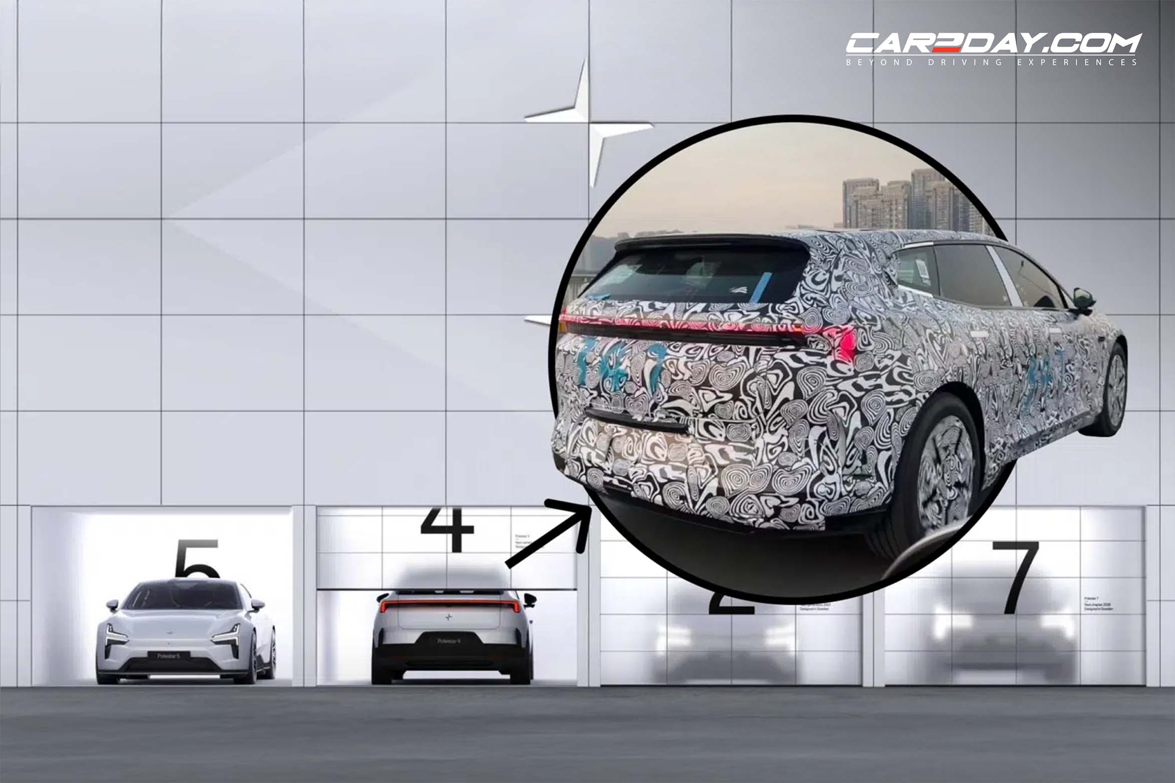 Polestar 4 Estate เวอร์ชันใหม่ที่พรางตัวทดสอบในจีนจุดเด่นนำครึ่งคันหน้าของเวอร์ชันเอสยูวีคูเป้มาต่อท้ายด้วยหลังคารถลาดลงมากขึ้นพร้อมพื้นที่สัมภาระที่กว้างขวางจุได้เยอะพร้อมสปอยเลอร์หลังตรงบนฝาท้าย