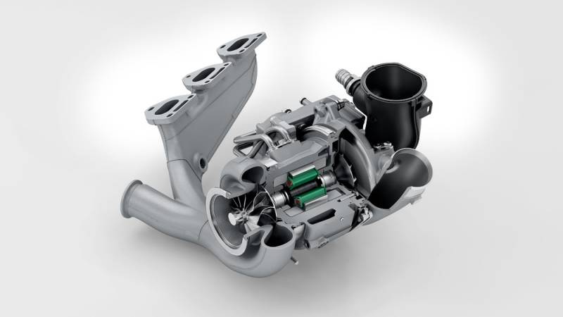 ระบบ T-Hybrid ที่มีน้ำหนักเบาและทรงพลัง มาพร้อมกับเทอร์โบชาร์จเจอร์ไฟฟ้าที่ได้รับการพัฒนา มีมอเตอร์ไฟฟ้าในตัวซึ่งอยู่ระหว่าง Compressor และ Turbine Wheel ของระบบเทอร์โบชาร์จเจอร์ ซึ่งช่วยเร่งความเร็วรอบของเทอร์โบชาร์จเจอร์ได้ทันที ส่งผลให้ระบบเทอร์โบชาร์จเจอร์ตอบสนองได้อย่างรวดเร็วมากขึ้น นอกจากนี้ มอเตอร์ไฟฟ้าในเทอร์โบชาร์จเจอร์ ยังทำหน้าที่เป็นเครื่องกำเนิดพลังงานไฟฟ้า ที่ผลิตพลังงานไฟฟ้าได้สูงสุดถึง 11 กิโลวัตต์ (15 แรงม้า) พลังงานนี้มาจากการดึงเอาไอเสียจากการเผาไหม้ ในส่วนของระบบการทำงานของเทอร์โบชาร์จเจอร์ไฟฟ้าของรุ่นปัจจุบัน ที่มีเพียง 1 ลูก มีศักยภาพทดแทนการทำงานของเทอร์โบชาร์จเจอร์ถึง 2 ลูกของรุ่นก่อนหน้านี้ ส่งผลให้การส่งกำลังมีความคล่องตัวและตอบสนองได้ดีขึ้น