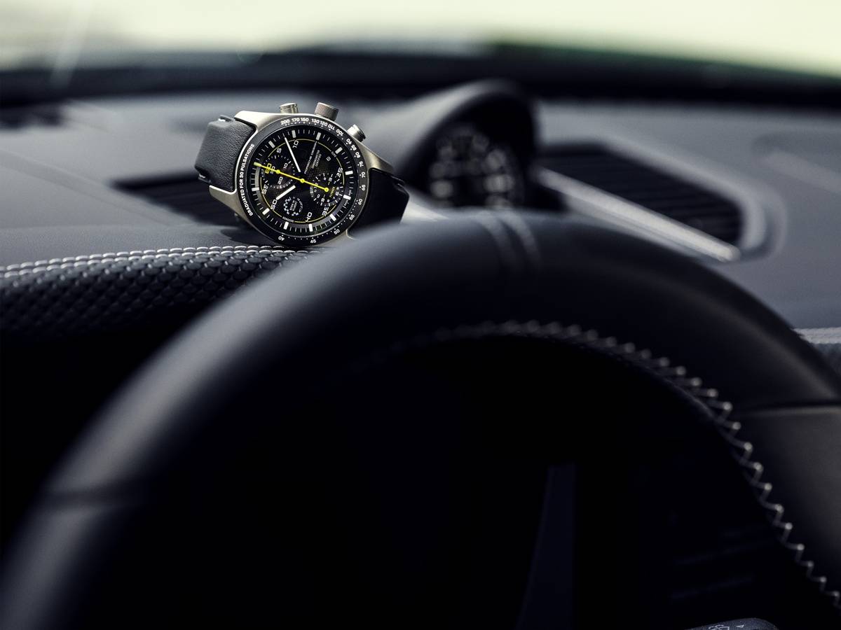 ขณะที่โรเตอร์หมุนถูกออกแบบให้คล้ายกับล้อของ GT3 วงแหวนหน้าปัดมีให้เลือกตามสีตัวถังทั้งหมดรวมถึงสีในโปรแกรม Paint to Sample สายนาฬิกาที่ทำจากหนังภายในของปอร์เช่และด้ายยังถูกปรับให้เข้ากับการตกแต่งของรถแต่ละคันอีกด้วย