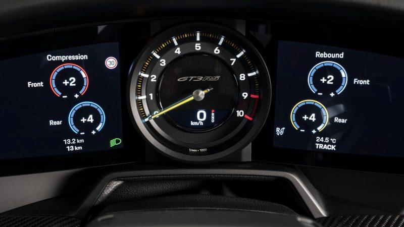 911 GT3 RS มาพร้อมกับการขับขี่ 3 โหมด ได้แก่ Normal, Sport และ Track และสำหรับโหมด Track สามารถปรับ Setting ระบบต่างๆ แยกกันได้ หนึ่งในนั้นคือ ระบบช่วงล่าง ด้านหน้า และด้านหลัง สามารถปรับแต่งให้ต่างกันได้ ในส่วนของระบบเฟืองท้าย สามารถปรับได้โดยการควบคุมผ่านสวิตซ์ควบคุมแบบหมุนที่พวงมาลัย การทำงานถูกออกแบบมาให้ใช้งานได้อย่างรวดเร็ว ซึ่งเป็นการออกแบบที่พัฒนามาจาก มอเตอร์สปอร์ต ซึ่งบนพวงมาลัยจะถูกติดตั้งด้วยปุ่มควบคุมแบบหมุน 4 ตัว และปุ่มกด Drag Reduction System (DRS)  หรือเรียกว่าปุ่มระบบลดแรงต้าน