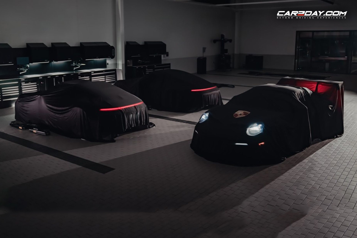จากรูปภาพเผยให้เห็น Porsche 3 คันที่คลุมผ้าไว้ สังเกตจากสัดส่วนด้านท้าย 2 คันดูเหมือนจะเป็น 911 รุ่นมาตรฐาน แต่คันที่สามนั้นต่างออกไปอย่างชัดเจน ด้วยเส้นสายที่ดูดุดันกว่า มีส่วนหน้ารถที่เฉพาะตัว และมาพร้อมหางหลัง (Rear Wing) ขนาดมหึมา
