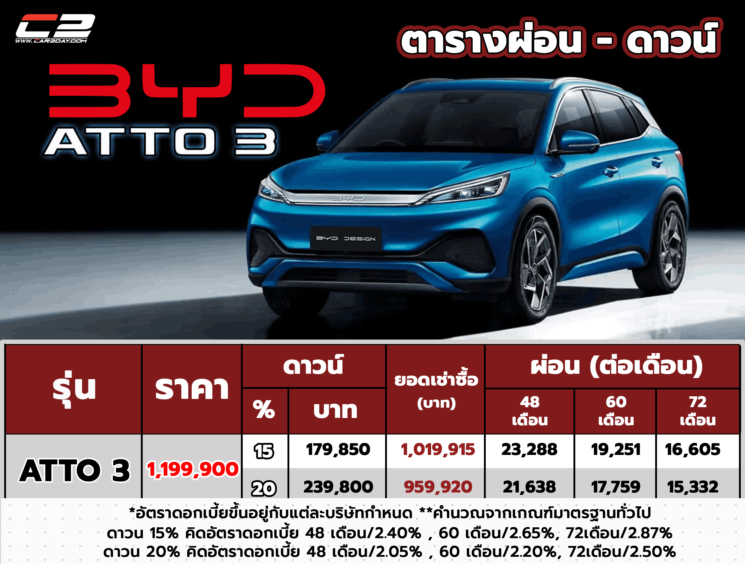 ตารางผ่อน – ดาวน์ รถยนต์ไฟฟ้า 2022 BYD ATTO 3