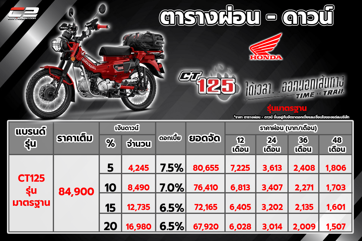 ตารางผ่อน – ดาวน์ 2022 New Honda CT125 (รุ่นมาตรฐาน)