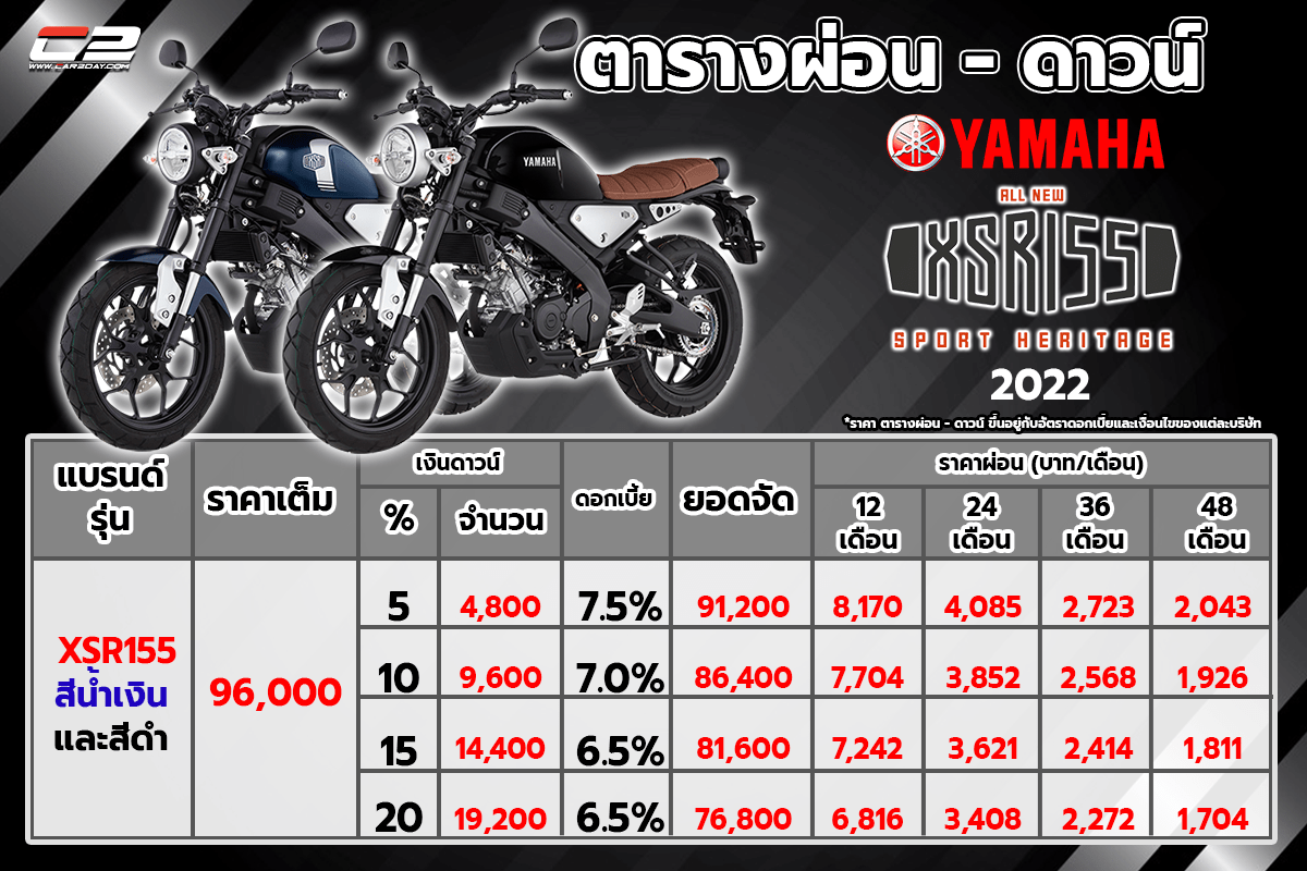 ตารางผ่อน – ดาวน์ 2022 New Yamaha XSR155