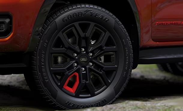 หล่อบาดใจกับภายนอกที่ดุดันมีสไตล์ ตั้งแต่กระจังหน้าดีไซน์เฉพาะรุ่น ล้ออัลลอยขนาด 20 นิ้ว ลายเข้มขลิบแดงพร้อมยาง 255/55 R20 จาก Goodyear รุ่น Territory HT ทรงพลัง