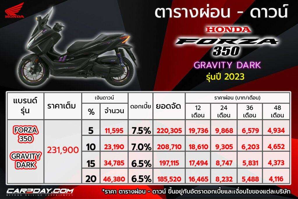 ราคาตารางผ่อน – ดาวน์ 2023 Honda Forza 350 Dark Gravity