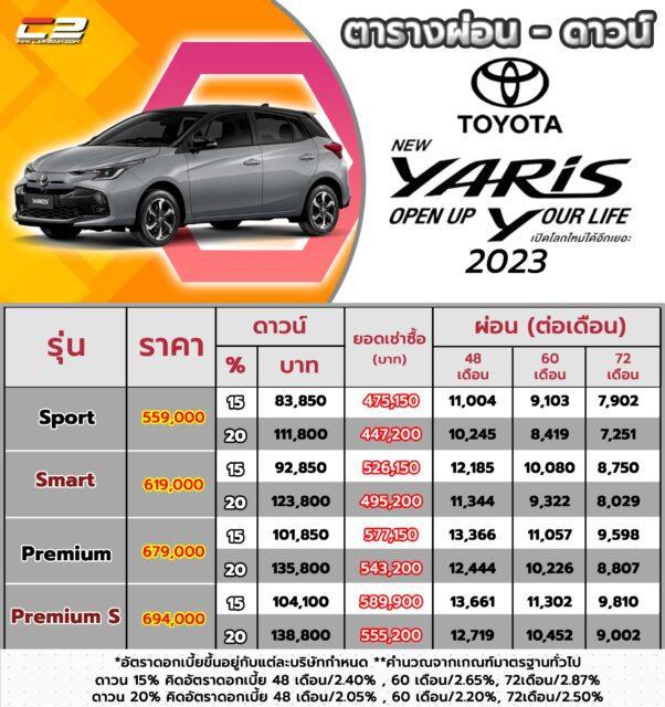 ราคาตารางผ่อน – ดาวน์ 2023 New Toyota Yaris Hatchback Minorchange