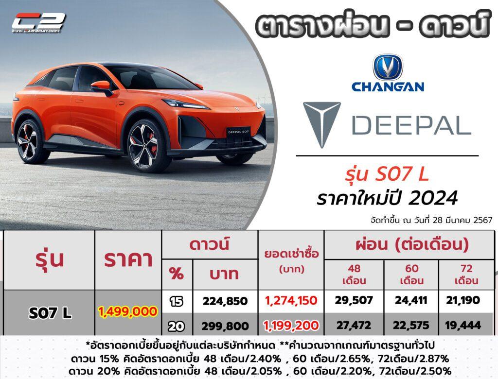 ราคาผ่อน – ดาวน์ 2024 Changan DEEPAL S07 L ใหม่