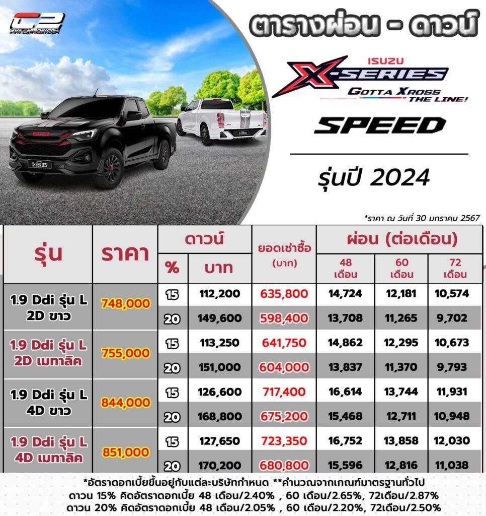 ราคาตารางผ่อน – ดาวน์ 2024 ISUZU X-Series รุ่น SPEED ทุกรุ่น