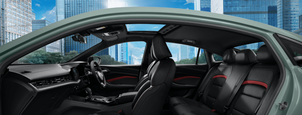 ภายในออกแบบในสไตล์สปอร์ตแต่ยังมีจุดเด่นในเรื่องความกว้าง ด้วยห้องโดยสารที่กว้างขวางที่สุดในเซกเมนต์ มีพื้นที่เหนือศีรษะ (Headroom) ที่สูงโปร่ง ตกแต่งภายในลุคสปอร์ตสีดำเดินเส้นสายด้วยสีแดง พร้อมหลังคาซันรูฟ