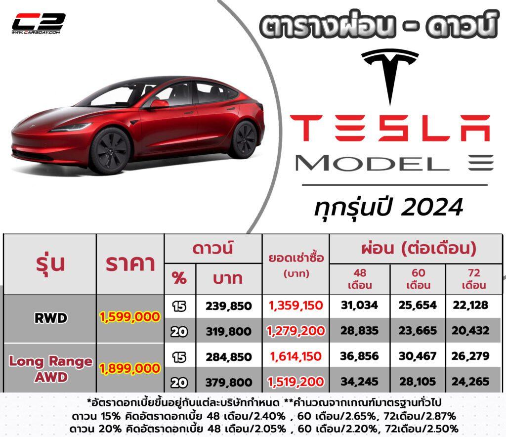 ราคาตารางผ่อน-ดาวน์ 2024 Tesla Model 3