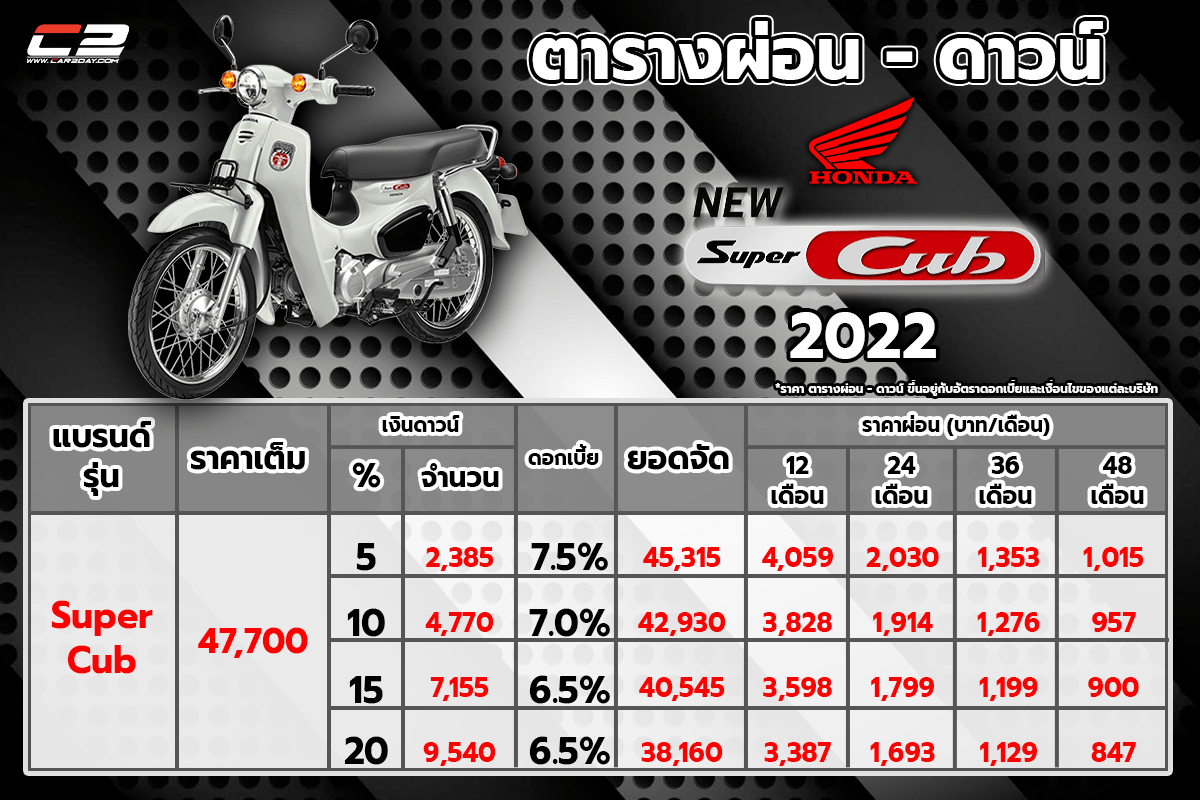ตารางผ่อน ดาวน์ New Honda Super Cub 2022