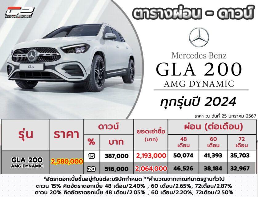 ราคาตารางผ่อน – ดาวน์ 2024 Mercedes-Benz GLA 200