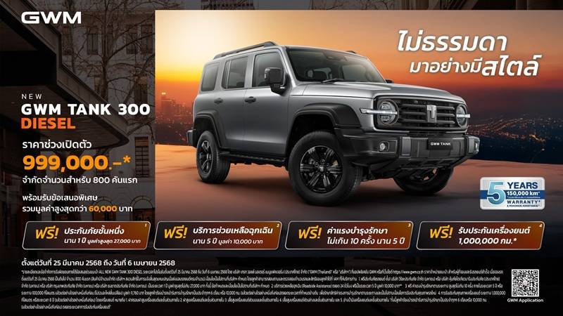 Promotion GWM TANK 300 Diesel พิเศษ รวมมูลค่าสูงสุดกว่า 60,000 บาท*