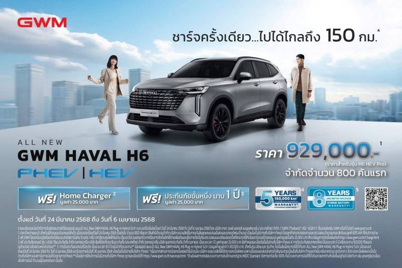 - HAVAL H6 Plug-in Hybrid SUV รุ่น ULTRA ราคา 1,149,000 บาท