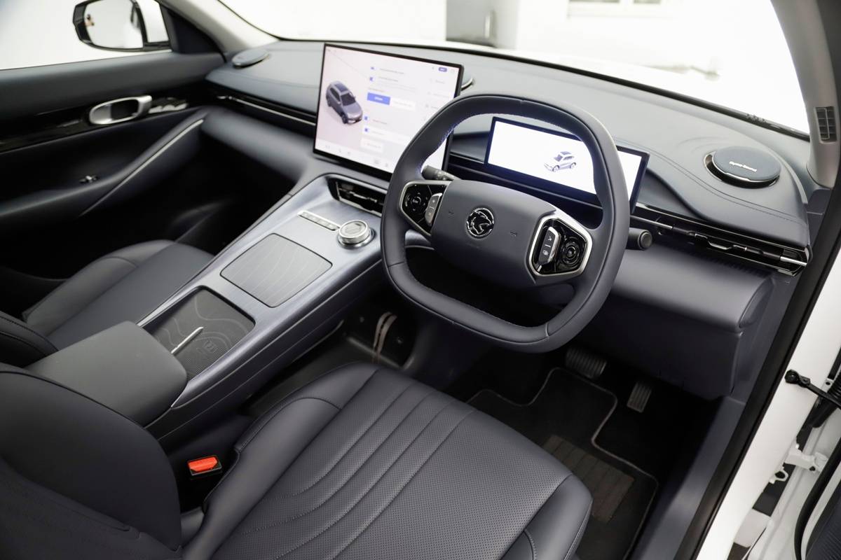 จอแสดงข้อมูลการขับขี่บนแผงคอนโซลหน้า HUD ขนาด 13.8 นิ้ว กับพวงมาลัยมัลติฟังก์ชัน 2 ก้านแบบหัวตัดท้ายตัด ใต้จอลงมาเป็นช่องแอร์โครเมียมคอนโซลกลางมีช่องเก็บของและที่ชาร์จมือถือไร้สายคู่ พร้อมลำโพง 16 จุดรอบคันกำลังขับ 1,000 W และ 6 จุด เบาะหนังแท้ทรงหรูหราตัดเย็บประณีตเดินด้ายอย่างบรรจงปรับด้วยไฟฟ้าคู่หน้ามีระบบอุ่นเบาะและปรับความเย็นในตัวเบาะ เบาะหลังพับได้ 60/40 มีพื้นที่ด้านท้าย 1,877 ลิตร กรณีพับเบาะและกรณีไม่พับเบาะ 461 ลิตร