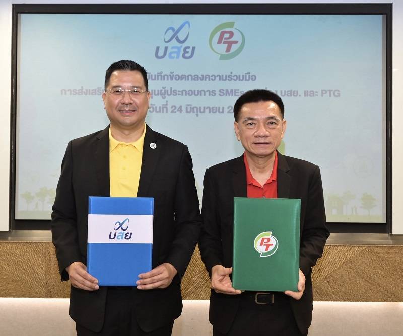 นายสิทธิกร ดิเรกสุนทร กรรมการและผู้จัดการทั่วไป บรรษัทประกันสินเชื่ออุตสาหกรรมขนาดย่อม (บสย.) และ นายพิทักษ์ รัชกิจประการ ประธานเจ้าหน้าที่บริหารและกรรมการผู้จัดการใหญ่ บริษัท พีทีจี เอ็นเนอยี จำกัด (มหาชน) หรือ PTG ลงนามบันทึกข้อตกลงความร่วมมือ (MOU) การส่งเสริมและสนับสนุนผู้ประกอบการ SMEs ระหว่าง บสย. และ PTG เพื่อร่วมกันส่งเสริมและสนับสนุนในการให้ความรู้ และพัฒนาศักยภาพด้านการดำเนินธุรกิจให้แก่กลุ่มผู้ประกอบการรายใหม่/New Gen ที่ต้องการเป็นเจ้าของแฟรนไชส์ร้านกาแฟพันธุ์ไทย รวมถึงแฟรนไชส์ อื่น ๆ ภายใต้เครือ พีทีจี เอ็นเนอยี เมื่อวันที่ 24 มิถุนายน 2567 ณ อาคาร CW Tower บริษัท พีทีจี เอ็นเนอยี จำกัด (มหาชน)