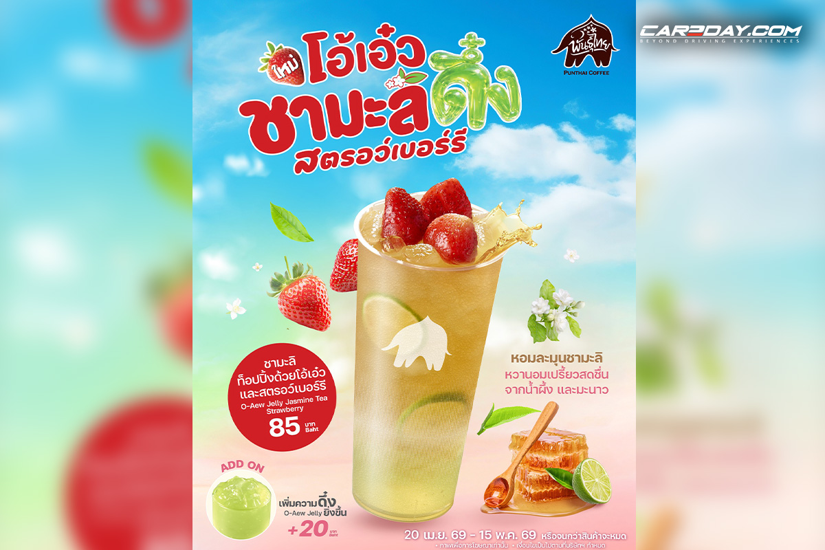 มาร่วมพิสูจน์ความหอมละมุน หวานอมเปรี้ยวสดชื่นดึ๋งยกแก้วกับ “โอ้เอ๋วชามะลิดึ๋งสตรอว์เบอร์รี” ในราคาเพียง 85 บาท พิเศษ! เพิ่มเพียง 20.- ก็ Add on โอ้เอ๋วได้แบบจุกๆ สัมผัสความฟินได้ตั้งแต่วันที่ 20 เมษายน 2569 – 15 พฤษภาคม 2569 (หรือจนกว่าสินค้าจะหมด) ที่ร้านพันธุ์ไทยทุกสาขาทั่วประเทศ และบริการเดลิเวอรีส่งความสดชื่นถึงบ้าน เพิ่มเติมคลิก www.facebook.com/punthaicoffee และ TikTok: @punthai_coffee_official