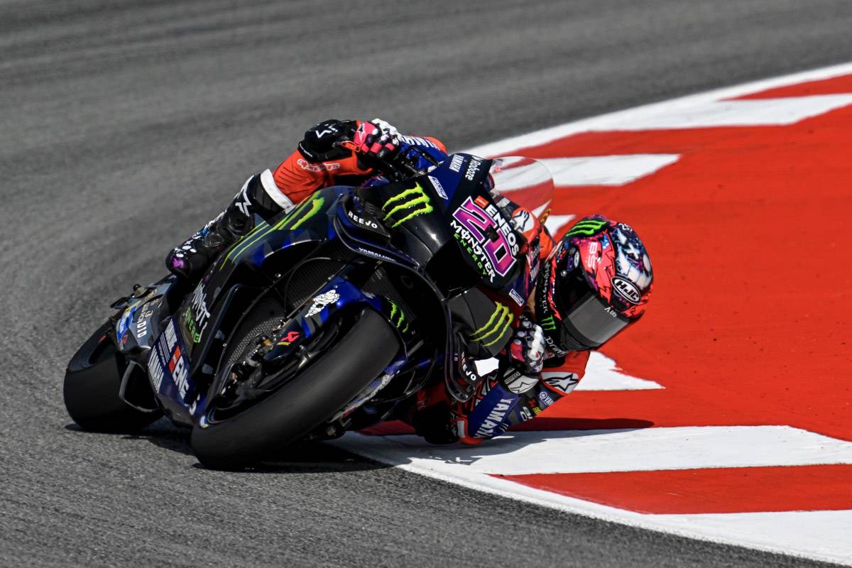 ศึก คาตาลัน กรังด์ปรีซ์ ผ่านการซ้อมรอบ Practice เพื่อตัดตัวรอบควอลิฟายเมื่อวันศุกร์ที่ 5 กันยายนที่ผ่านมา ผลการซ้อมปรากฏว่า ฟาบิโอ กวาร์ตาราโร แชมป์โลก 1 สมัยจาก มอนสเตอร์ อีเนอร์จี้ ยามาฮ่า โมโตจีพี พารถแข่ง YZR-M1 หมายเลข 20 รั้งอันดับ 11 ด้วยเวลาต่อรอบ 1 นาที 38.602 วินาที ตามหลังหัวแถว 0.461 วินาที ส่วน อเล็กซ์ รินส์ ทีมเมทชาวสเปนหมายเลข 42 รั้งอันดับ 16 ตามหลัง 0.691 วินาที