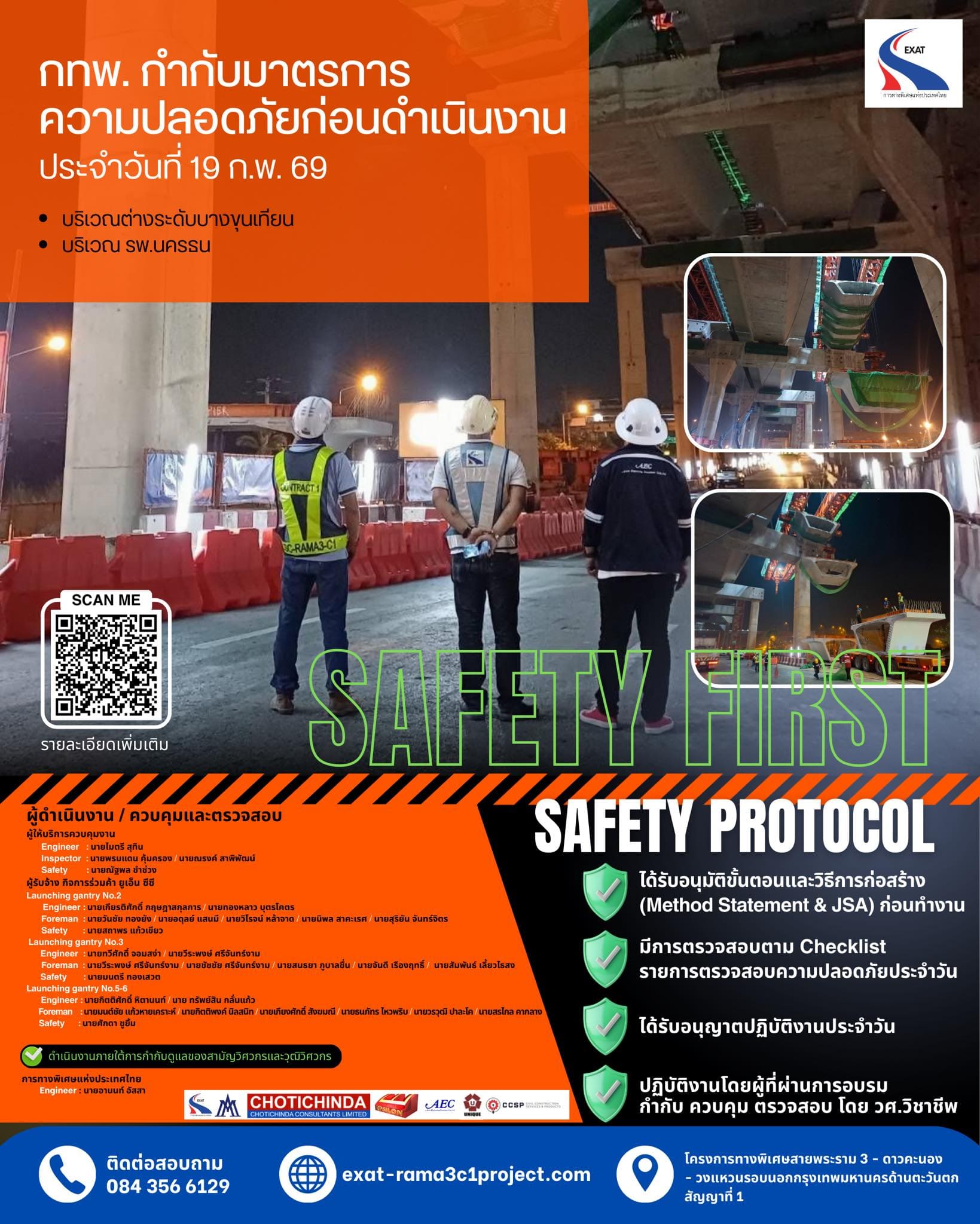 - ต้องได้รับอนุมัติขั้นตอนและวิธีการก่อสร้าง (Method Statement & JSA) ก่อนเริ่มงานทุกครั้ง