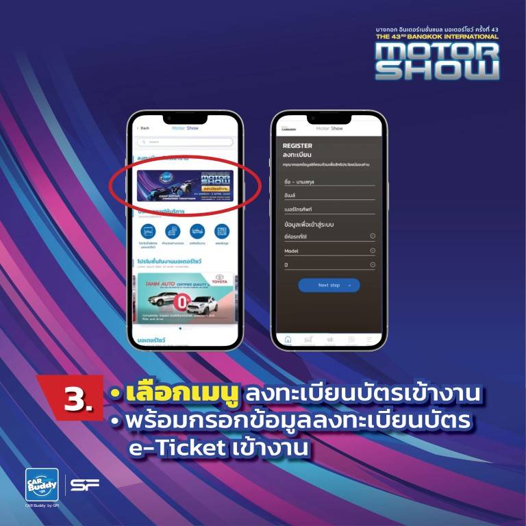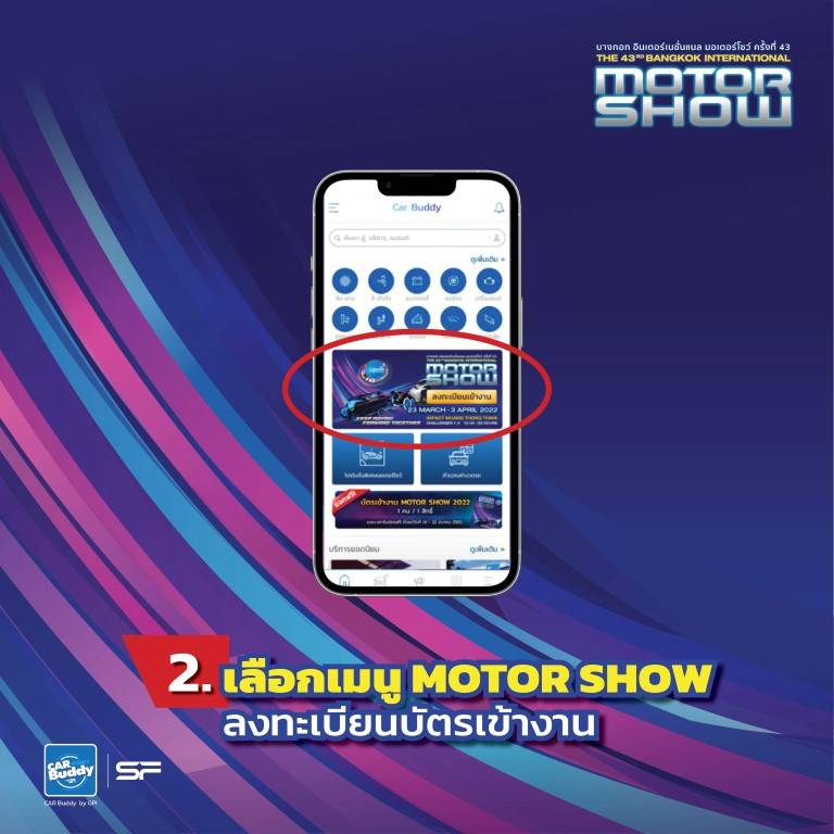 2. กดเลือกเมนู MOTOR SHOW เพื่อลงทะเบียนบัตรเข้างาน