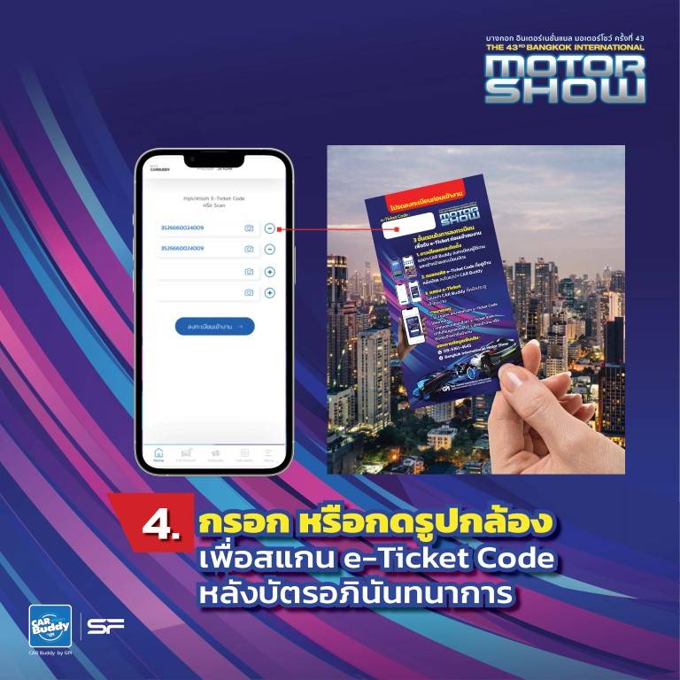 4. กรอกรหัส หรือกดรูปกล้อง เพื่อสแกนรหัส e-Ticket ที่อยู่หลังบัตรอภินันทนาการ