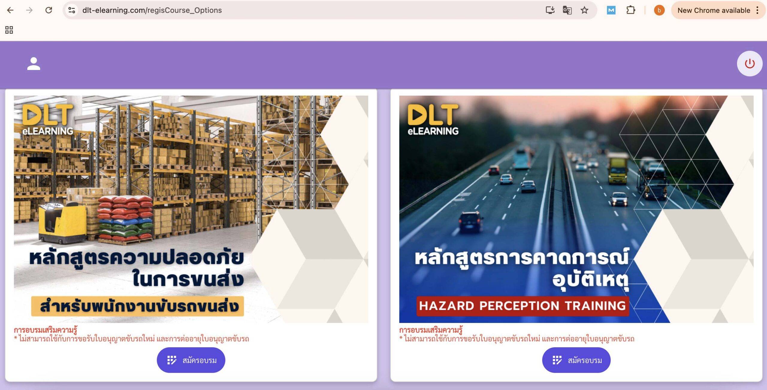 2. เลือกประเภทการอบรม: เลือกการอบรมตามประเภทใบอนุญาตขับรถที่ต้องการต่ออายุ