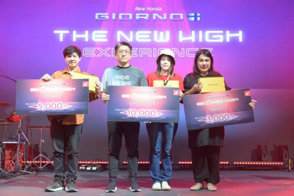 หลังจากที่ได้ขับขี่ Giorno+ สัมผัสประสบการณ์ท่องเที่ยวเป็นที่เรียบร้อย เราได้มาร่วมกับอีกหนึ่งกิจกรรมสุดเอ็กซ์คลูซีฟอย่าง ‘The New High Experience’ อีกด้วยเป็นอีเวนท์ที่อัดแน่นอนด้วยกิจกรรมไม่ว่าจะเป็น โซนกิจกรรมให้ทดลองขับขี่ Giorno+ และจุดถ่ายรูป Check-in สุดไฮแฟชั่นที่เปิดโอกาสให้ผู้เข้าร่วมงานได้ถ่ายรูปคู่กับ Giorno+ ให้โพสต์ท่าอวดสไตล์ของตัวเอง พร้อมลุ้นชิงรางวัลพิเศษ อีกทั้งโซนจัดแสดงรถแต่งจากสำนักแต่งชั้นนำของเมืองไทย หลากหลายสไตล์มาให้ชมกันถึงที่ นอกจากนี้ยังมีสินค้า Collection จาก Honda และสินค้าจาก H2C สำหรับรุ่น Giorno+ ให้เลือกช็อปกันอีกด้วย ก่อนจะปิดท้ายด้วยมินิคอนเสิร์ตสุดมันส์จากวง ‘Mirr’ ให้ได้สนุกไปสุดๆ กับทุกเพลง