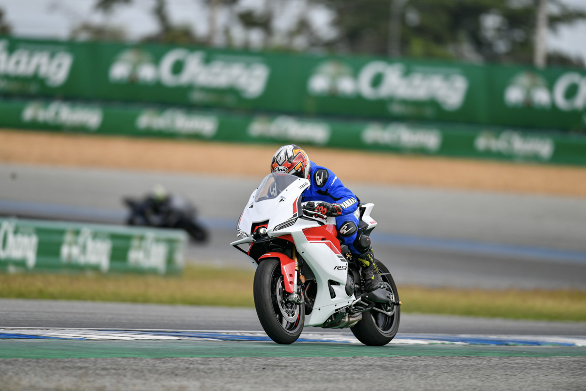 จากการทดสอบในสนามช้างฯ แสดงให้เห็นถึงการผสมผสานอย่างลงตัวของท่านั่ง ที่เป็นหัวใจของแนวคิดใหม่ แฮนด์คลิปออนสูงกว่า R6 และใกล้ตัวมากขึ้นทำให้น้ำหนักไม่กดข้อมือจนล้า ขณะเดียวกันยังคงให้ฟีลรถสนามอย่างชัดเจน และแน่นอนว่าในสนามยังขี่ได้สบายๆ แบบนี้การใช้งานจริงบนถนนสามารถขับขี่ได้อย่างไม่ต้องกลัวล้าอีกต่อไปซึ่งเป็นสิ่งที่หาได้ยากในรถซูเปอร์สปอร์ตยุคก่อน