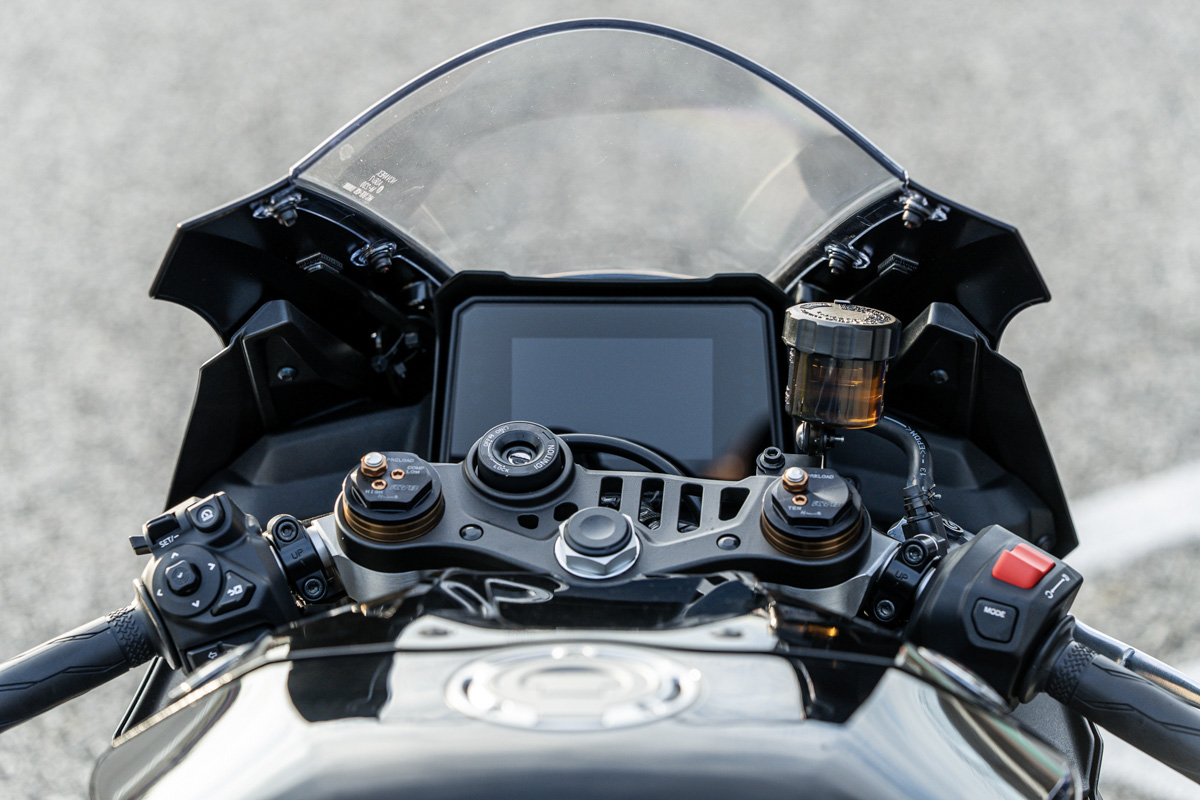 มีโหมดขับขี่รวม 9 โหมด รวมถึง Track Mode 4 แบบ พร้อมหน้าจอ TFT 5 นิ้ว เชื่อมต่อแอป Yamaha สำหรับดูข้อมูลการขี่เชิงลึก