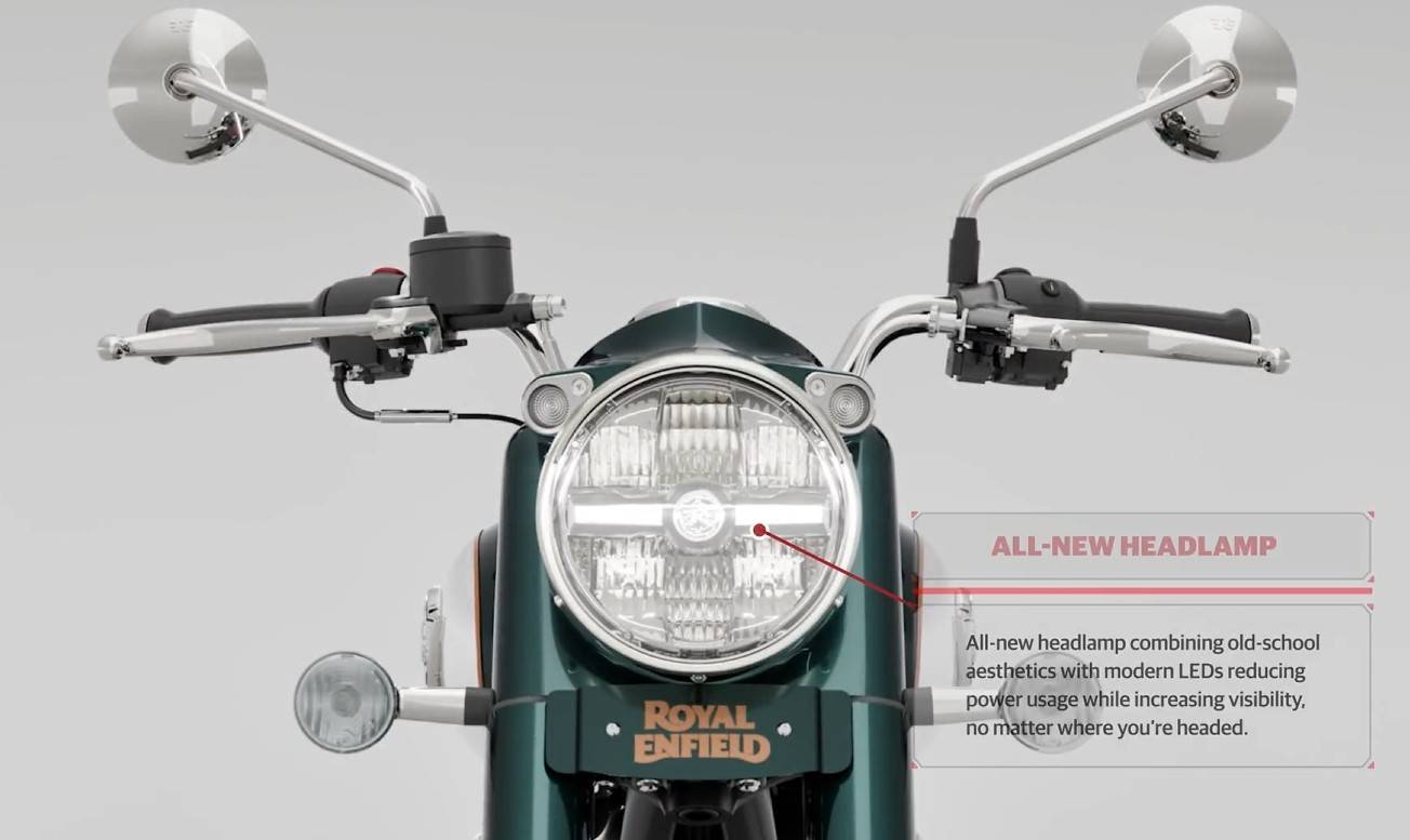 สำหรับการเปลี่ยนแปลงในครั้งนี้ Classic 350 ดีไซน์ภายนอก ยังคงไม่มีอะไรเปลี่ยนแปลงไปมากนัก โดยส่วนที่ได้รับการปรับปรุงใหม่ ของจักรยานยนต์นี้จะเป็นในส่วนของ ไฟหน้า ไฟท้าย และไฟเลี้ยวแบบใหม่ ซึ่งเปลี่ยนจากหลอดไส้เป็นเทคโนโลยี LED และในส่วนของ เรือนไมล์จอแสดงผลดิจิทัลปรับปรุงใหม่มาพร้อมตัวเลขบอกตำแหน่งเกียร์กับหน้าจอ Tripper ระบบนำทางที่ใช้งานง่ายควบคู่ไปกับแอปพลิเคชั่นของ รอยัล เอ็นฟิลด์ และพอร์ตชาร์จ USB นอกจากนี้คันคลัทช์ และมือเบรก จะสามารถปรับระดับได้อีกด้วย