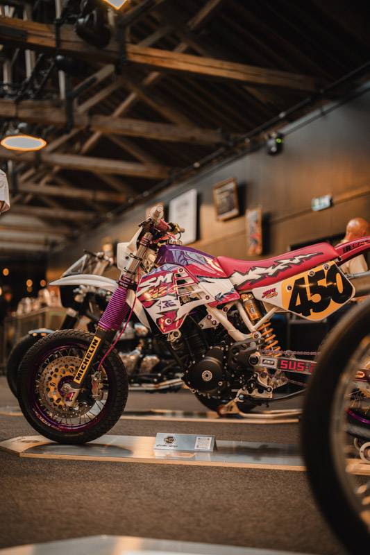 อีกคันที่สร้างสีสันให้กับงานคือ SM450 Urban Guerilla ผลงานความร่วมมือระหว่าง Sticky’s Speed shop (ชื่อที่ใช้ในการออกแบบและกราฟิกของ Image Worx) และ Ryan Roadkill ผู้เป็นนักวาดภาพประกอบอิสระที่มีชื่อเสียง โดยทั้งสองได้รับแรงบันดาลใจจากความทรงจำในวัยหนุ่มที่อยู่กับ BMX, Krusty Demons และสเก็ต ทำให้ SM450 Urban Guerilla เป็นเหมือนการย้อนเวลากลับไปในปี 1997 ด้วยดีไซน์ที่เต็มไปด้วยพลังและเอกลักษณ์