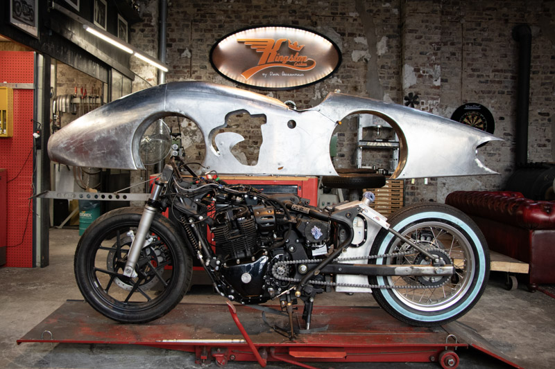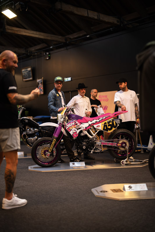 หนึ่งในไฮไลท์ที่สร้างความฮือฮาคือ The Kingsman นอกจากชื่อสุดเท่ที่คุ้นหูกันแล้ว ยังเป็นรถมอเตอร์ไซค์ที่ได้รับการรังสรรค์และสร้างด้วยมือโดยศิลปินชื่อดังอย่าง Dirk Oehlerking จาก Kingston Custom สตูดิโอในภูมิภาค Ruhr ของเยอรมนี ซึ่งเคยเป็นที่รู้จักในนาม ‘City of a Thousand Fires’ เพราะเป็นแหล่งที่ตั้งโรงงานเหล็กจำนวนมาก สมกับเป็นบ้านของศิลปินที่มีความสามารถในการสร้างสรรค์ด้วยตนเองในโรงหล่อเก่า The Kingsman ถือกำเนิดขึ้นในการแข่งขัน ‘Custom Build Challenge’ ที่งาน Art of Machine ใน Malle Mile ปี 2024 โดยพวกเขาได้สร้างและแข่งมอเตอร์ไซค์ Malle Custom สุดยอดเยี่ยมจนได้รับรางวัล ทำให้ได้รับรถ Royal Enfield Shotgun และงบประมาณในการสร้างรถคัสตอมสำหรับงาน Wheels & Waves 2025