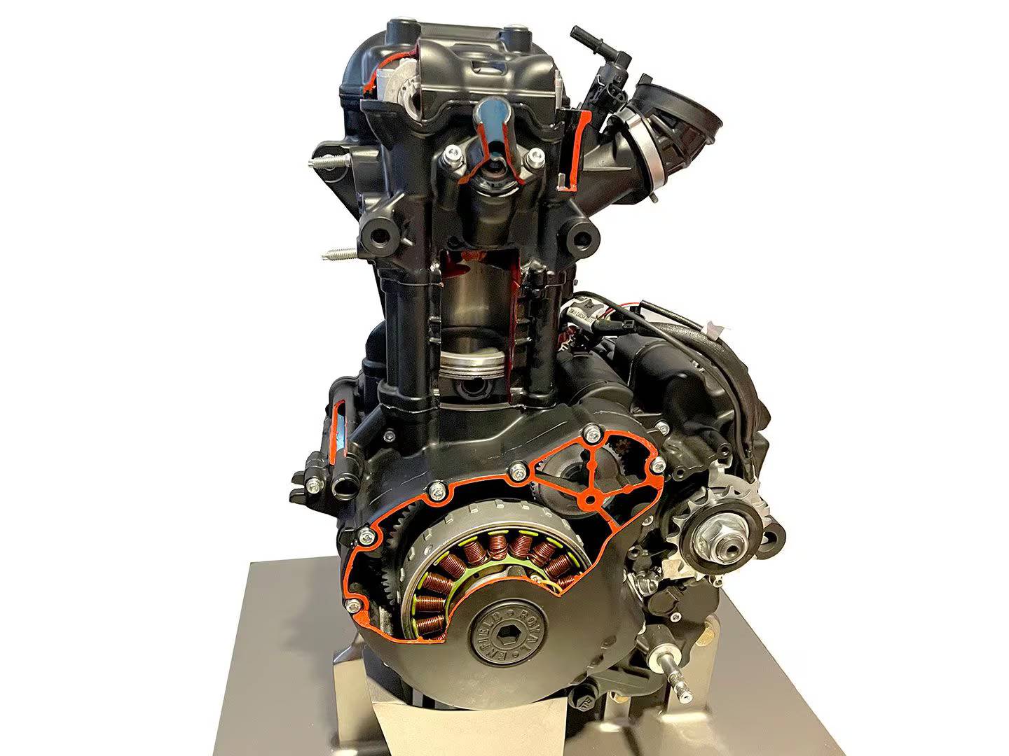 Guerrilla 450 ยังได้ใช้ขุมพลังเดียวกันกับ Himalayan 450 อีกด้วย ซึ่งจะเป็นเครื่องยนต์ Sherpa 452 ซี.ซี. DOHC สูบเดียว ส่งกำลังด้วยชุดเกียร์ 6 สปีด และตามเอกสารรับรองได้ระบุว่าให้กำลังสูงสุด 40 แรงม้า ที่ 8,000 รอบต่อนาที และแรงบิด 40 นิวตันเมตร ที่ 5,500 รอบต่อนาที ซึ่งในส่วนยังไม่มีการเปลี่ยนตัวเลขไปจากเดิม แต่อัตราทดเกียร์อาจแตกต่างออกไปเพื่อให้เหมาะกับลักษณะการใช้