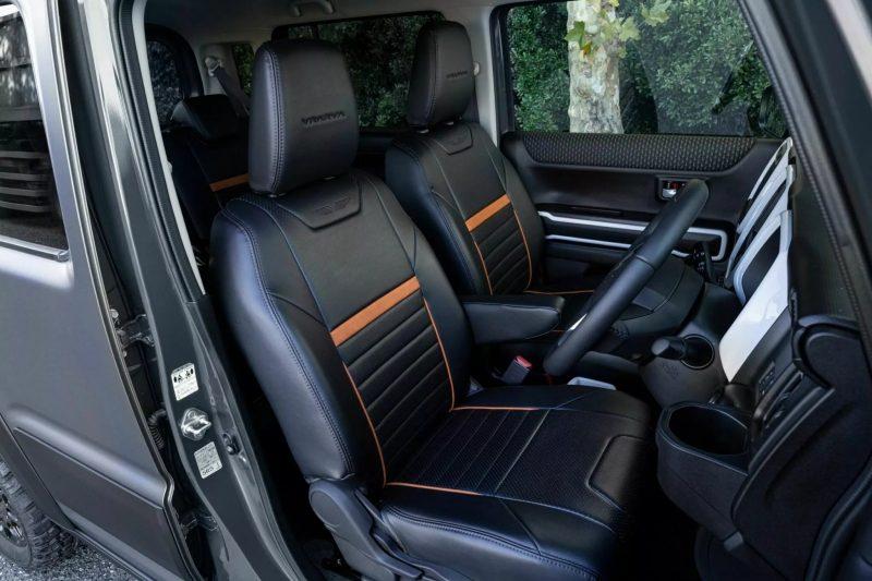 Suzuki Hustler มาพร้อมพลาสติกแบบไม่ทาสีสไตล์ครอสโอเวอร์จากโรงงาน แต่ Vrarva ได้เพิ่มปริมาณให้มากขึ้น สิ่งนี้เห็นได้ชัดเจนยิ่งขึ้นบนโปรไฟล์ ด้วยส่วนขยายบังโคลนหนาและแถบป้องกันที่ประตู ที่สำคัญกว่านั้น ล้อขนาด 15 นิ้วใหม่หุ้มด้วยยาง Toyo Open Country ช่วยให้ยึดเกาะพื้นผิวลื่นได้ดีขึ้น ระบบกันสะเทือนแบบยกสูง ในส่วนของการตกแต่งภายใน บริษัทมีตัวเลือกเบาะนั่งหุ้มใหม่เพื่อให้ความรู้สึกพรีเมียมยิ่งขึ้น