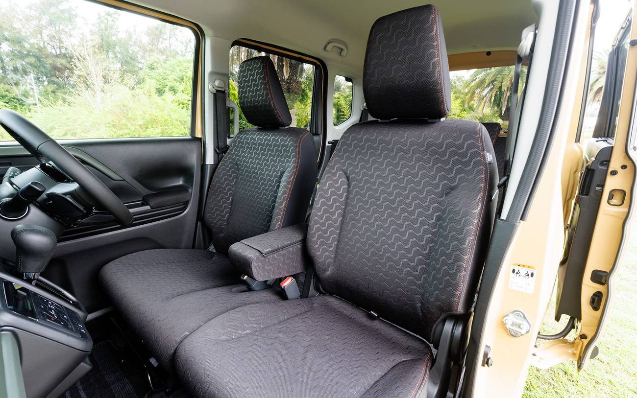 เบาะนั่ง 4 ที่นั่งนั่งสบายหุ้มผ้าสีดำลวดลายเด่นเดินด้ายสีส้ม เบาะฝั่งคนนั่งสามารถเลื่อนได้มากสุด มีที่พักแขนที่เบาะหน้าและเบาะหลังและเบาะนั่งด้านหลังสามารถเลื่อนปรับสูง-ต่ำพับได้แบบ 50/50 แล้วที่รองนั่งสามารถยื่นออกมาเพิ่มความสบายในการนั่งมากขึ้นคล้ายเก้าอี้บาร์เบอร์ในร้านตัดผม มีช่องเก็บของหลังเบาะคู่หน้าติดตั้งถาดอเนกประสงค์หลังเบาะคู่หน้าไว้วางแก้วน้ำอย่างสะดวก
