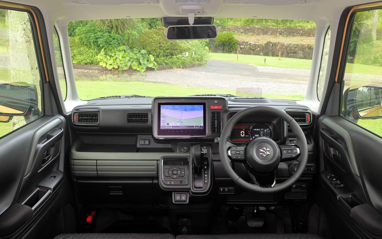 ภายในห้องโดยสารยกมาจากรุ่น SPACIA ปกติปรับตัวตนเข้ากับมาดลุยเริ่มที่แผงคอนโซลหน้าดีไซน์แปลกตาฉูดฉาดจัดวางการทำงานของฟังก์ชันเอาไว้เอื้อมมือถึงใกล้มากที่สุดเริ่มมาตรวัดจอสี TFT LCD ขนาด 4.2 นิ้ว ใกล้กันมีจอสัมผัสขนาดใหญ่ 9 นิ้วแบบ HD Suzuki Connect รองรับการเชื่อมต่อทั้ง Apple CarPlay Android Auto