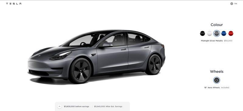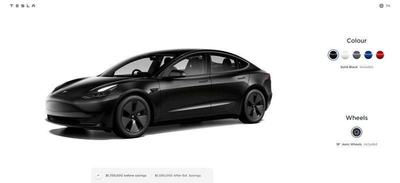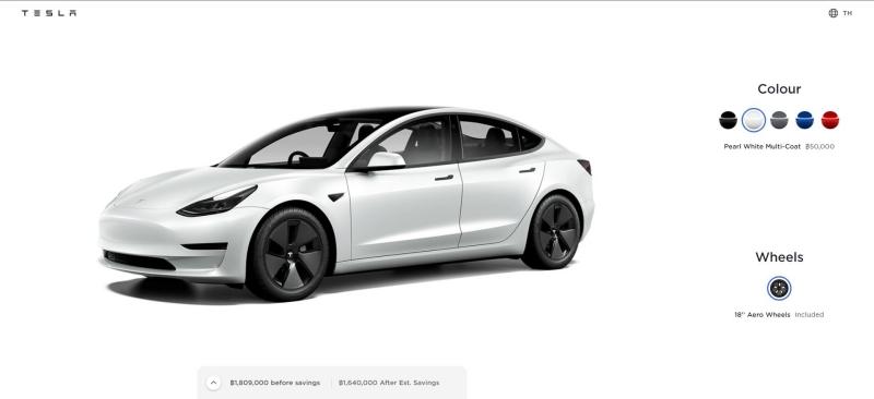 ตอนนี้ เป็นที่น่าสังเกตว่า Tesla มีตัวเลือกสีเริ่มต้นที่แตกต่างกันในแต่ละภูมิภาคต่างๆ ทั่วโลก ในยุโรปยังคงเป็นสีขาวมุก Pearl White Multi-Coat ในขณะที่ China สีดำ Solid Black เป็นสีเริ่มต้น และสำหรับประเทศไทย มีจำหน่าย 2 รุ่น คือ Model 3 และ Model Y โดยมีสีเริ่มต้นที่ไม่เสียค่าใช้จ่ายเพิ่มคือ สีดำ Solid Black ส่วนสีขาวมุก Pearl White Multi-Coat และสีเงิน Midnight Silver Metallic เพิ่มเงิน 50,000 บาท และสีแดง Red Multi-Coat เพิ่มเงิน 80,000 บาท