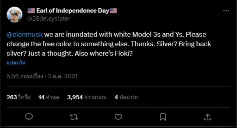 Elon Musk ตอบกลับทวีตและกล่าวว่าเขาจะหารือเกี่ยวกับข้อเสนอแนะกับทีม จนผ่านไปหนึ่งปีครึ่ง Tesla ได้กำหนดให้สีดำ Midnight Silver Metallic เป็นสีตัวถังเริ่มต้น แม้ว่าจะเป็นการยากที่จะบอกว่าบริษัทรับฟังคำแนะนำจากสาธารณชนหรือมีเหตุผลทางธุรกิจสำหรับการเปลี่ยนสีเริ่มต้นครั้งนี้