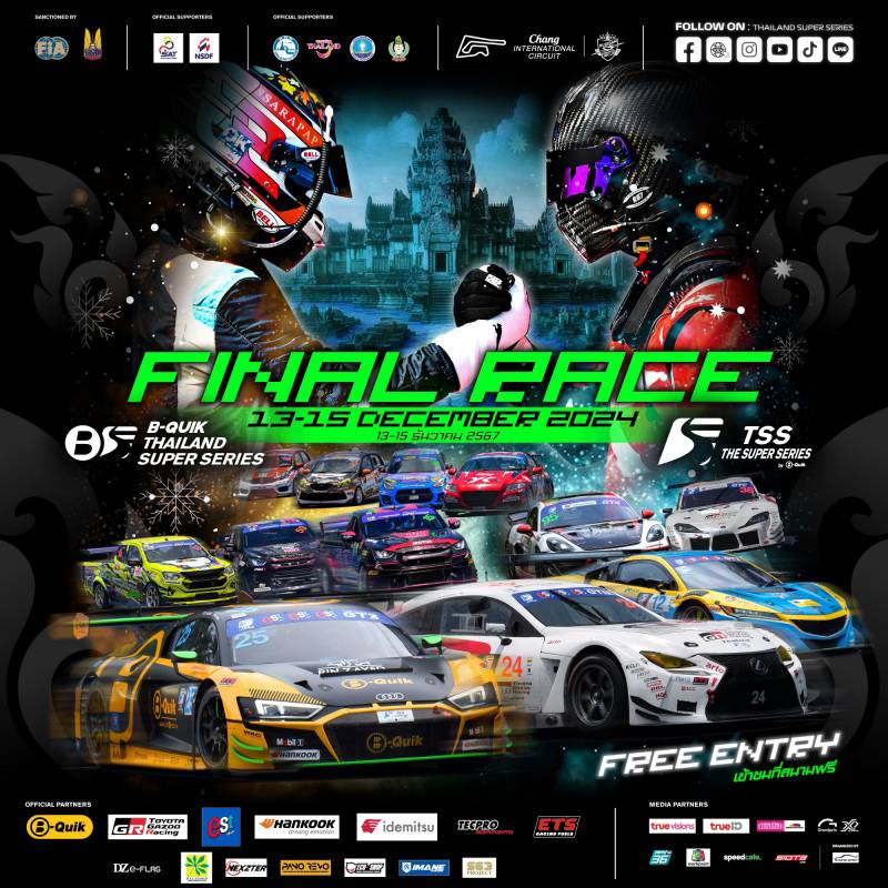 แสงสว่างปลายอุโมงค์ใกล้มาถึง กับศึกสุดท้ายแห่งรายการ B-Quik Thailand Super Series / TSS The Super Series by B-Quik ฤดูกาล 2024 โดย บริษัท เรซซิ่ง สปิริต จำกัด ผู้จัดการแข่งขันรถยนต์ทางเรียบสุดยิ่งใหญ่ระดับอาเซียน ตรึง สนามช้าง อินเตอร์เนชั่นแนล เซอร์กิต จังหวัดบุรีรัมย์ ในวันที่ 13-15 ธันวาคม 2567 รองรับทัพรถแข่งสมรรถนะสูง ดวลความเร็วนัดชี้ชะตา ที่รับประกันได้ว่า “เดือด” ทุกรุ่นการแข่งขัน