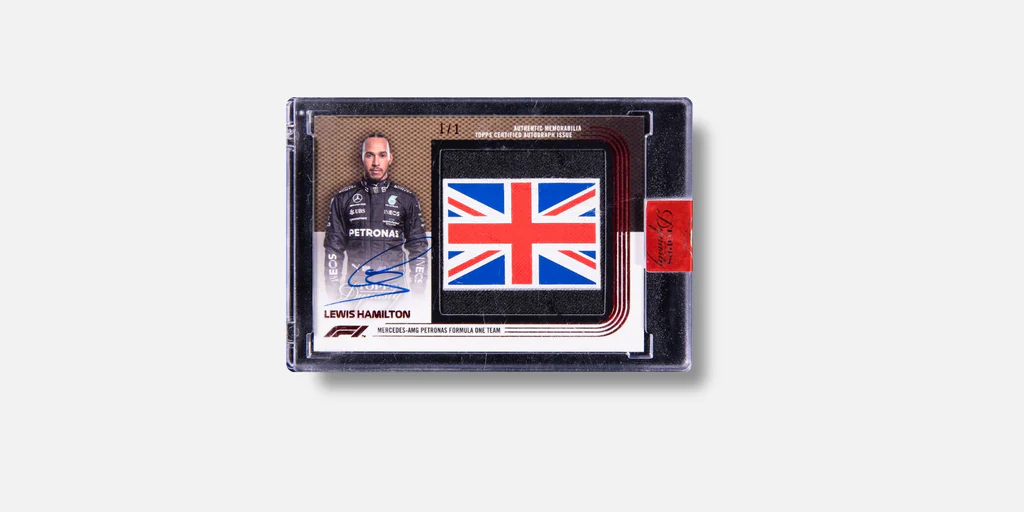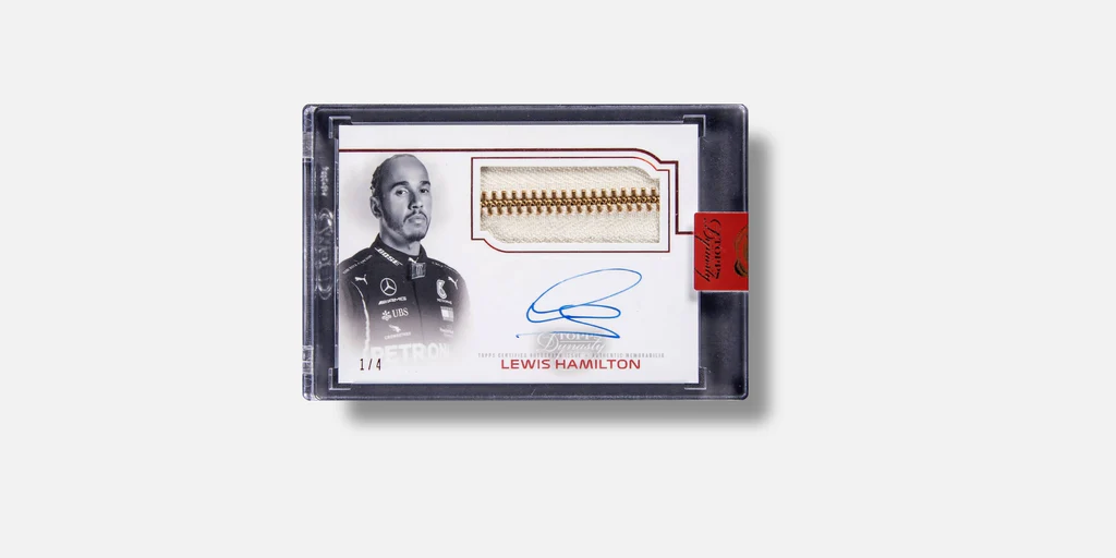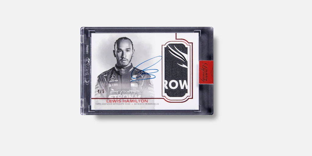 การ์ดสะสมแฮมิลตันใบนี้ถือเป็นผลงานชิ้นเอกแห่งยุคสมัยจาก Topps F1 Dynasty การ์ดใบนี้มีจำนวนจำกัดเพียง 10 ใบเท่านั้น โดดเด่นด้วยลายเซ็นบนการ์ดและดีไซน์แพตช์อันทันสมัย นับเป็นตัวอย่างอันโดดเด่นของการ์ดสะสม F1 สีสันของสีแดง ขาว และดำ ผสานกับโลโก้ Topps Formula 1 ช่วยเพิ่มเสน่ห์ให้กับการ์ดใบนี้