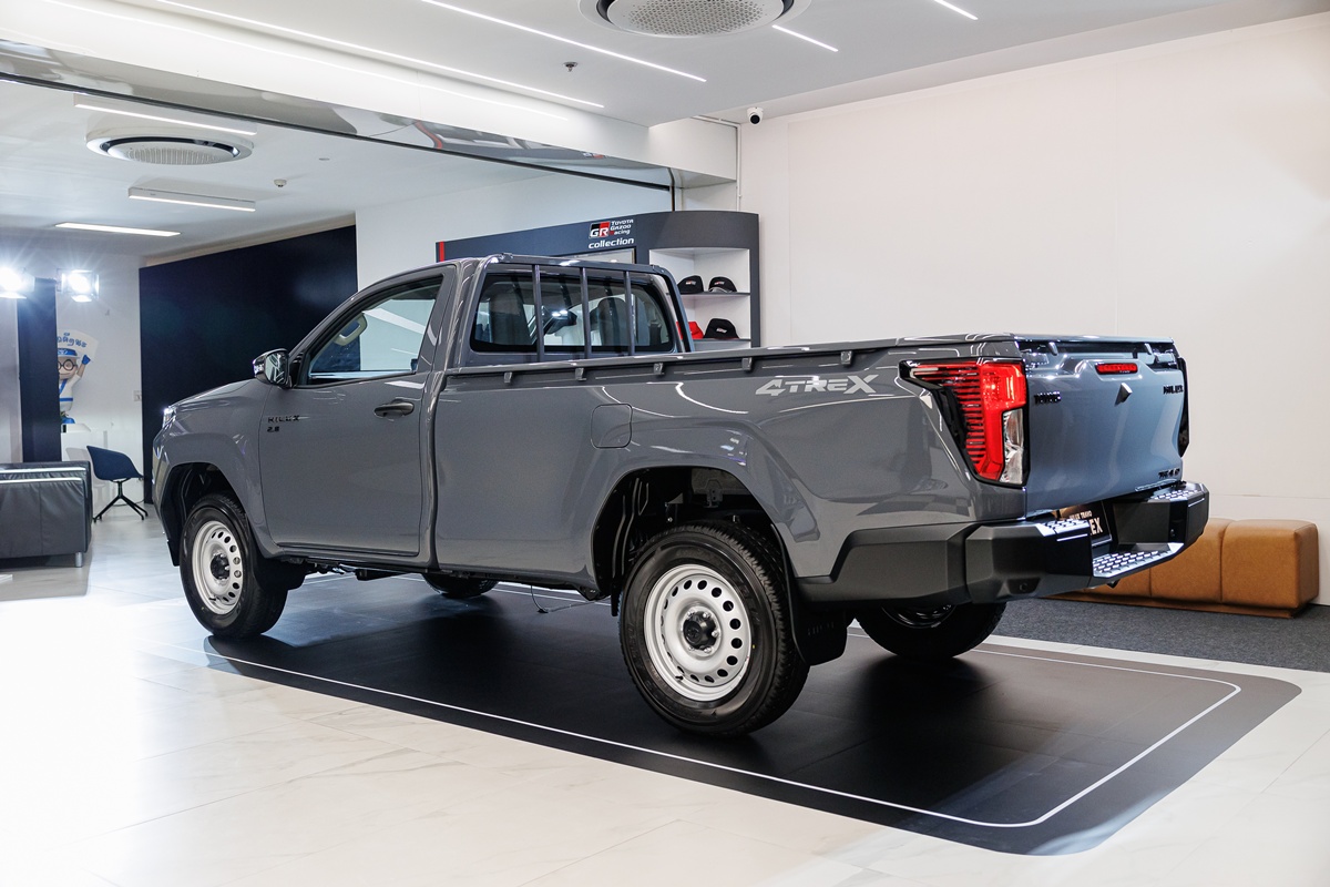 ส่วนรุ่น STANDARD CAB 4TREX ได้ไฟหน้า LED และไฟท้าย Bulb สีขาวแดง กระจังหน้ามาแบบตราอักษร Toyota แทนตราสามห่วง ทรงสามเหลี่ยมไส้ในลายรังผึ้ง Hexagonal Grip สีเดียวกับตัวรถ ชุดกันชนหน้าทรงเหลี่ยมพร้อมช่องระบายอากาศขนาดใหญ่ทรงสามเหลี่ยมด้านข้างตกแต่งสีดำและกระทะล้อขนาด 17 นิ้ว พร้อมยาง 225/70R17C โดยมีมิติมิติตัวรถดังนี้