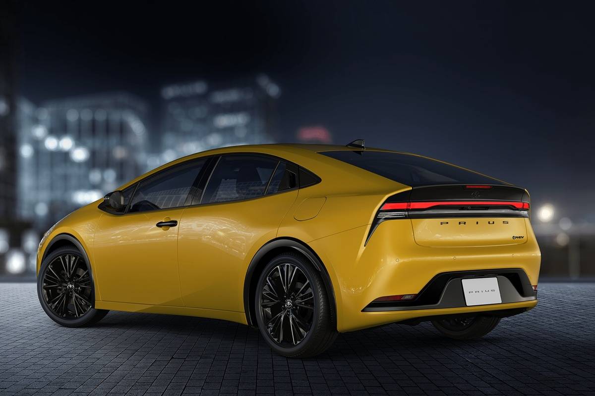 ด้านหลังมาในแบบไฟท้าย LED พาดเต็ม รูปตัว A โดยไส้ในของชุดไฟท้ายออกแบบมาเป็นแนวเรียวยาว พร้อมตราชื่อรุ่น Prius ติดเว้นช่องไฟดูสวยงามขึ้น รับกับชุดกันชนท้ายตกแต่งกรอบป้ายทะเบียนสีดำเงาตัวใหญ่ ล้ออัลลอยขนาดใหญ่ขึ้นเป็น 19 นิ้ว สีดำ พร้อมยาง Bridgestone ECOPIA EP510 195/50R19 และตราสัญลักษณ์ โลโก้สามห่วง ชื่อรุ่นและตรา PHEV สีดำ ใช้พื้นฐาน TNGA GA-C หรือ Toyota New Global Architecture เจเนอเรชันที่สอง โดยตัวรถใหญ่ขึ้นตั้งแต่