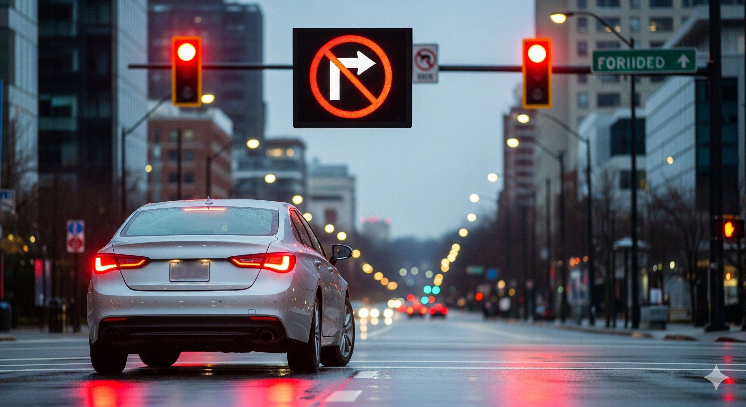 8. ห้ามเลี้ยวขวาที่สี่แยกไฟแดง หากไม่มีไฟลูกศรกำกับ