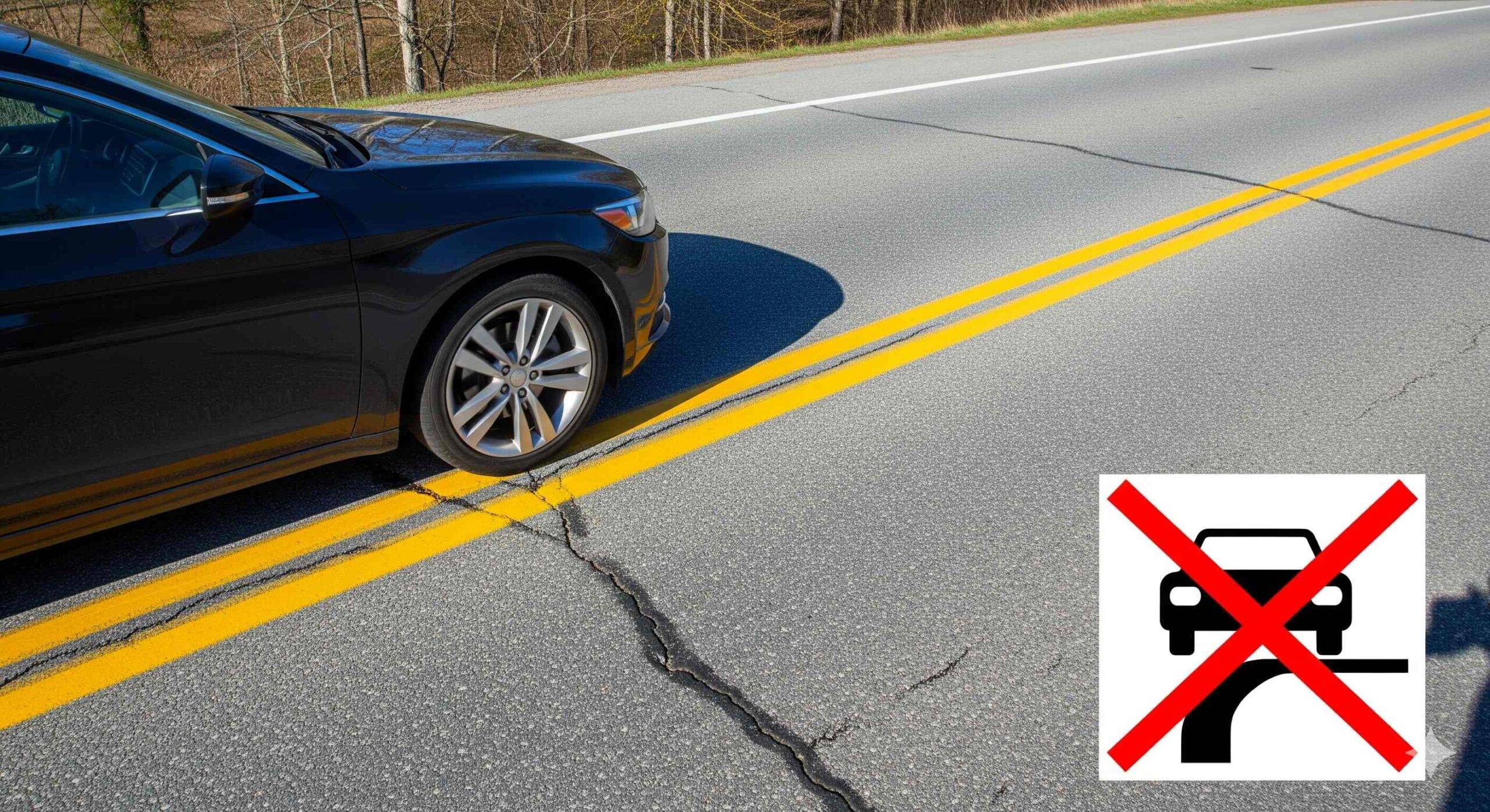 9. ห้ามขับรถคร่อมเส้นทึบ
