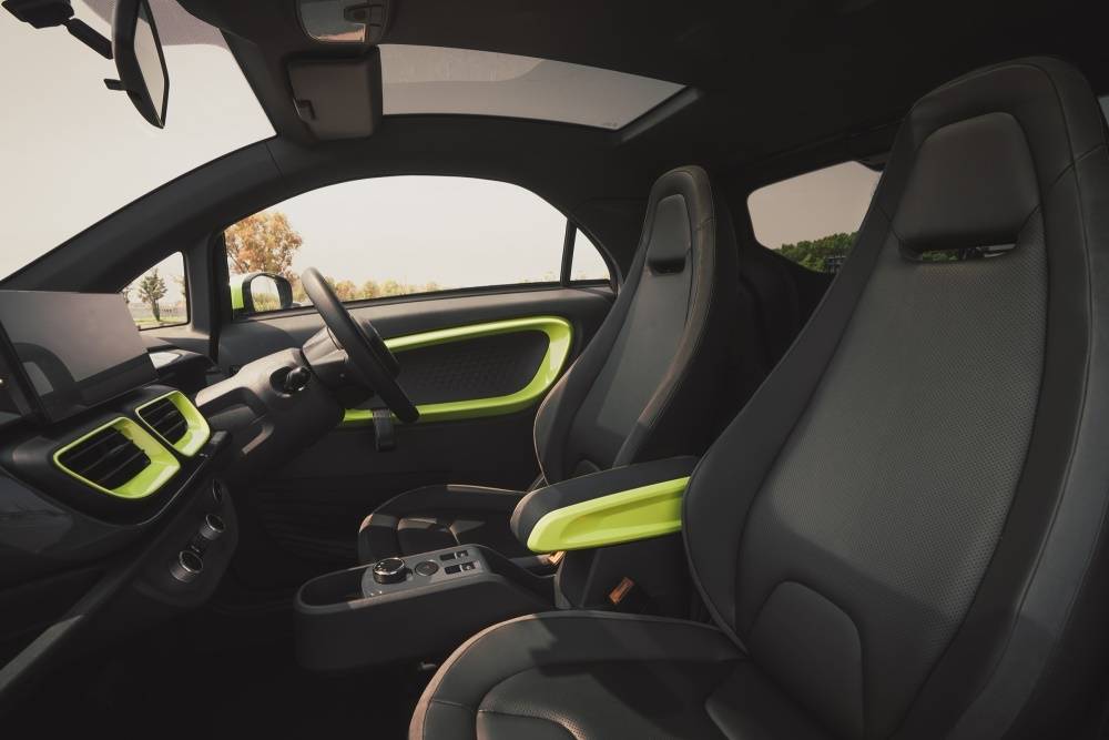 ด้านภายในน่ารักด้วยการพิมพ์แบบ 3 มิติ 3D-printed นั่งได้ 2 ที่นั่ง โครงเบาะทรงสูงโอบกระชับหุ้มด้วยวัสดุผ้าคอนโซลหน้าออกแบบใช้งานง่ายด้วยพวงมาลัยมัลติฟังก์ชัน 2 ก้าน พร้อมหน้าจอแสดงผลขนาด 7 นิ้ว และขนาดใหญ่ 10 นิ้ว แบบลอยตัว มาพร้อมปุ่ม Push Start ระบบปรับอากาศอัตโนมัติ แป้นเปลี่ยนเกียร์ที่เป็นแบบมือหมุน มาพร้อมไฟฉุนเฉิน และที่เปิดกระจกแบบไฟฟ้า